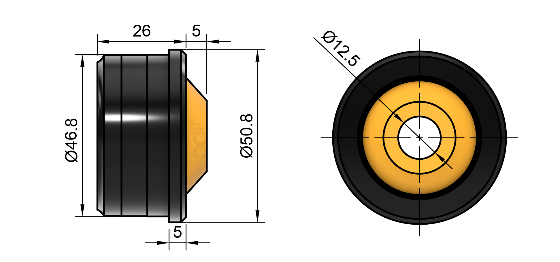 Kit composto por 10 mancais em nylon, desenvolvidos para tubo industrial com diâmetro externo de 50,8 mm e espessura de 2,0 mm. O conjunto inclui rolamentos de precisão e tampas de proteção com furo central para passagem do eixo de 12 mm.